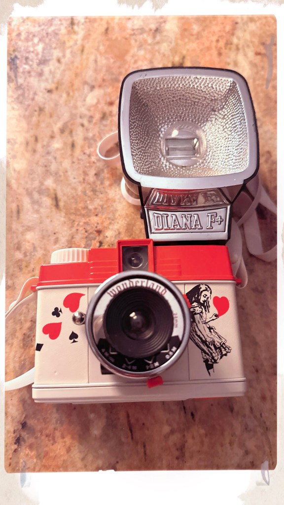 Meet the newest member of my camera collection. The Diana F+ Mini Wonderland 35mm film camera is beautifully illustrated with Alice in Wonderland designs by artist John Tenniel. The hearts make me smile and its diminutive size make it easy to take everywhere.